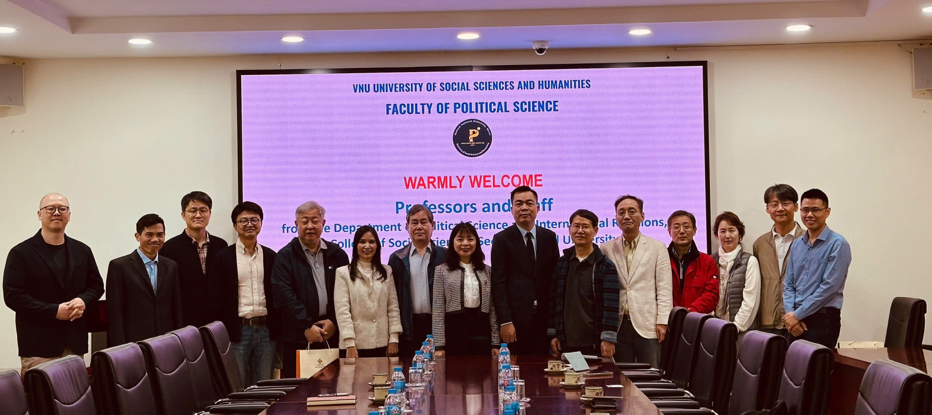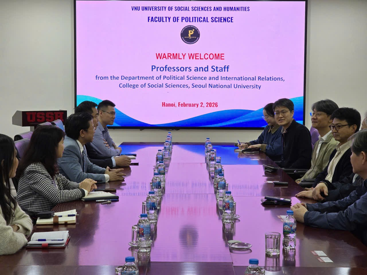 Nhằm nâng cao chất lượng nghiên cứu, đào tạo và hợp tác quốc tế, sáng ngày 02/02/2026, Khoa KHCT đã cùng với lãnh đạo Nhà trường có buổi tiếp đoàn Giáo sư và cán bộ tới từ Khoa Khoa học Chính trị và Quan hệ quốc tế, Trường Khoa học Xã hội, Đại học Quốc gia Seoul (Hàn Quốc).